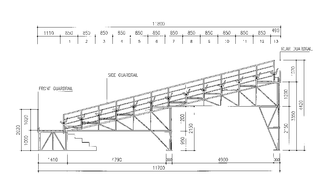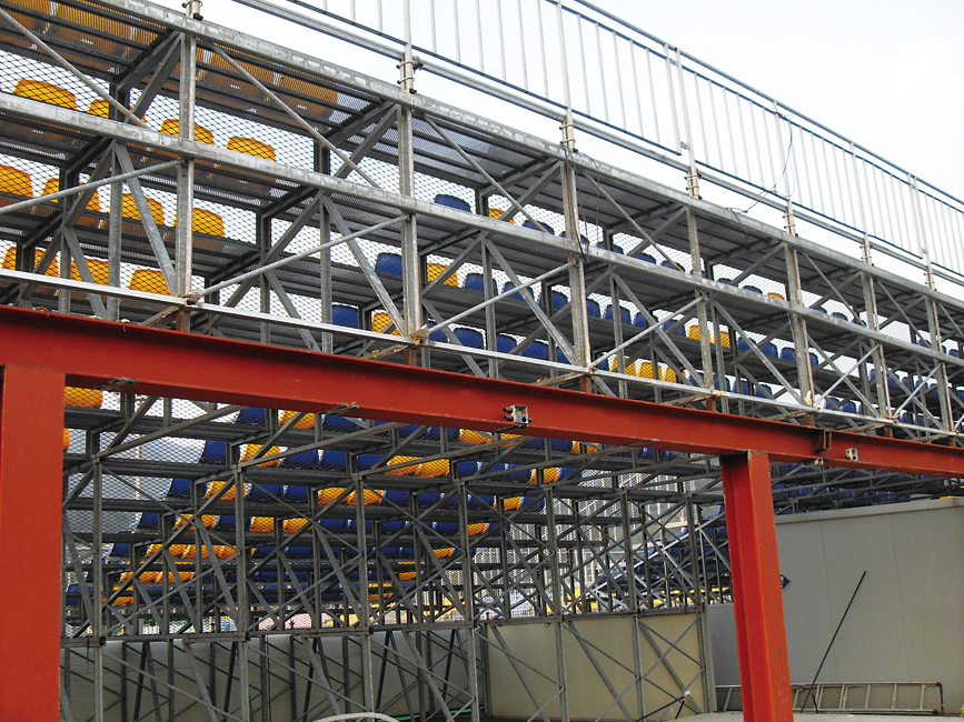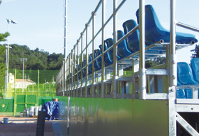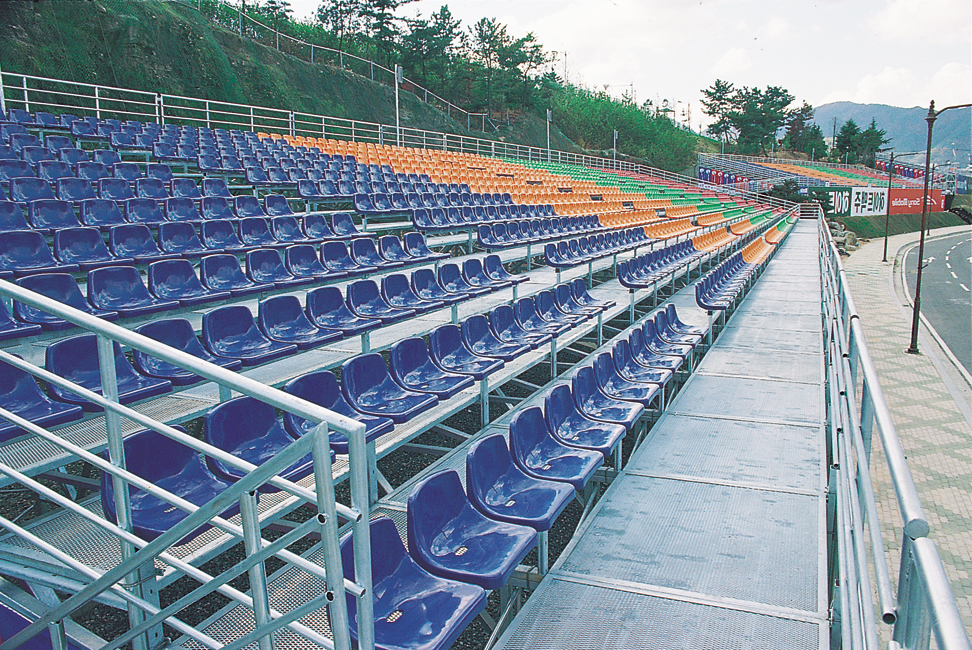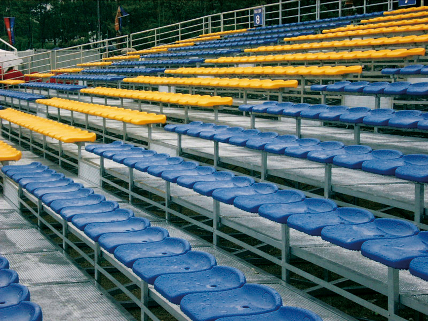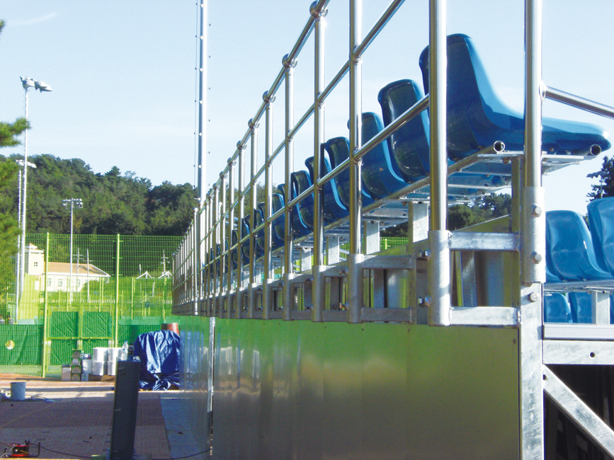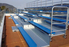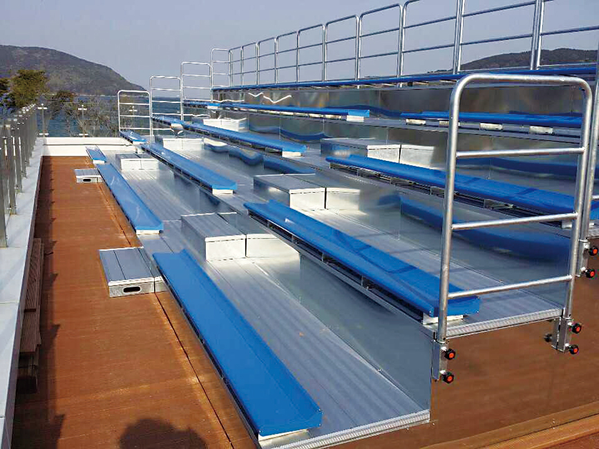 Demountable Bleacher is a economical chair system to be easy to secure a sight of audience adjusting width and height of podium and to secure a safety of viewing providing a simple assembly and installament of bleacher for indoor and outside occasional events.